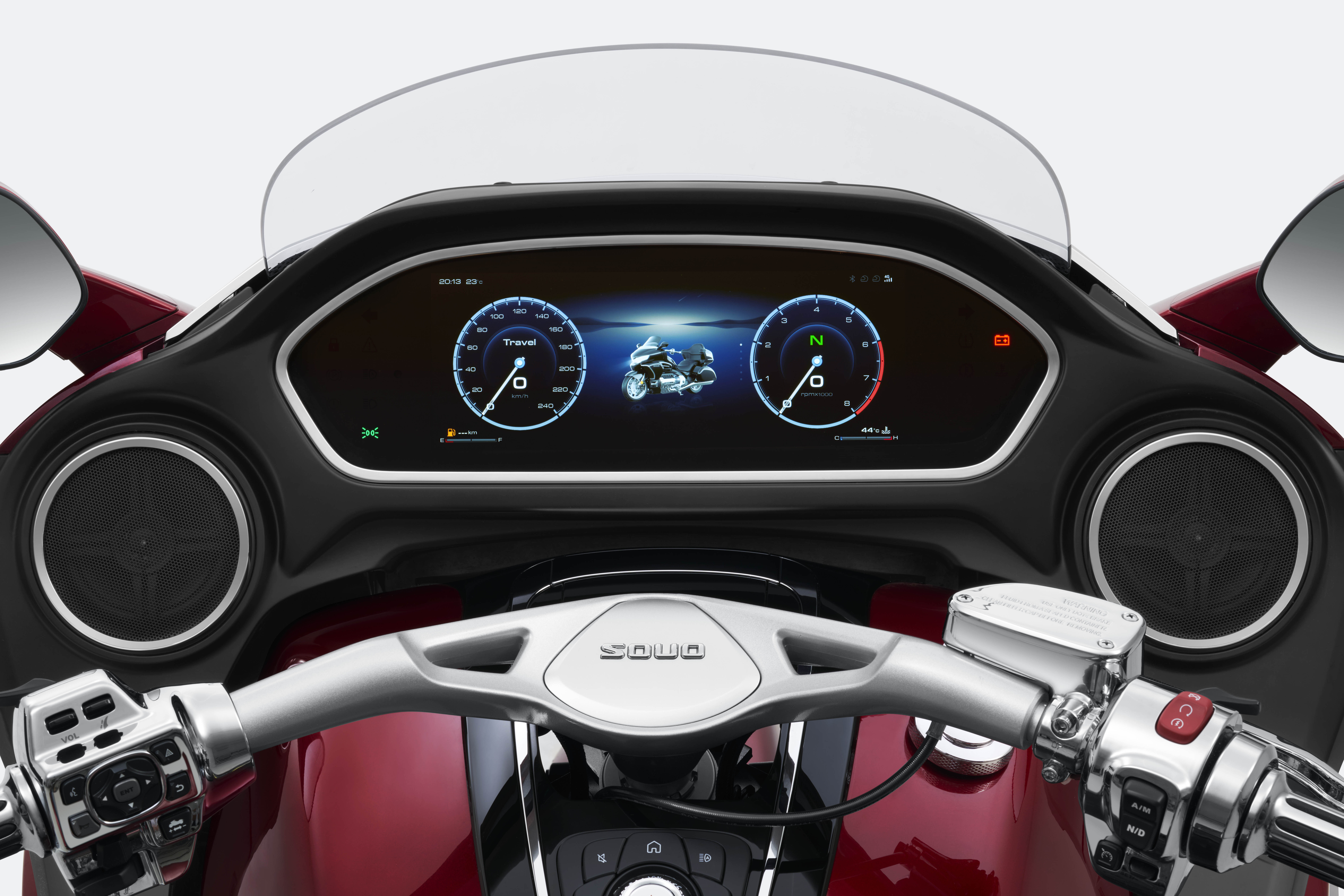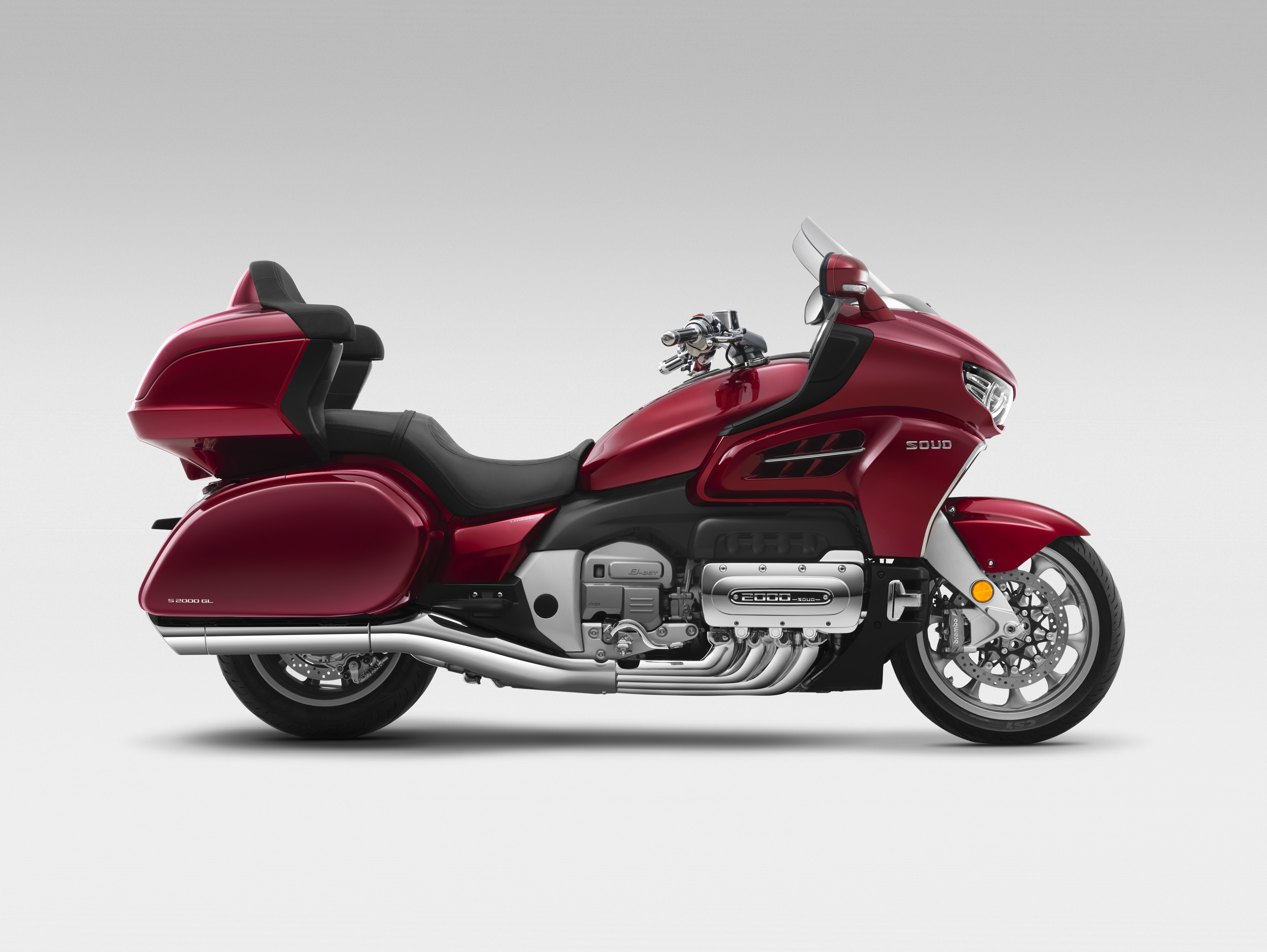 A SOUO S2000 apresenta o novo conceito de motocicleta premium da marca, equipada com motor boxer de oito cilindros, 2.0 litros, 154 cv e câmbio DCT de oito marchas. O chassi de alumínio e os recursos de assistência reforçam sua proposta de estabilidade, torque linear e condução confortável tanto em percursos urbanos quanto em viagens. O painel totalmente digital surpreende pela inovação tecnológica num segmento que costuma ser mais conservador nos recursos técnicos.