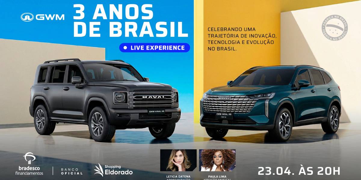 A GWM Brasil transmite na próxima quinta-feira, 23, uma live especial em comemoração aos seus três anos de operação no país. A gravação, que tem como cenário o showroom GWM Carrera no Shopping Eldorado, em São Paulo (SP), será uma das formas de celebrar a presença da marca em território nacional, além da sua conexão com o público brasileiro ao longo desse período. A transmissão será feita nos canais oficiais da autotech no YouTube, LinkedIn e Instagram.
